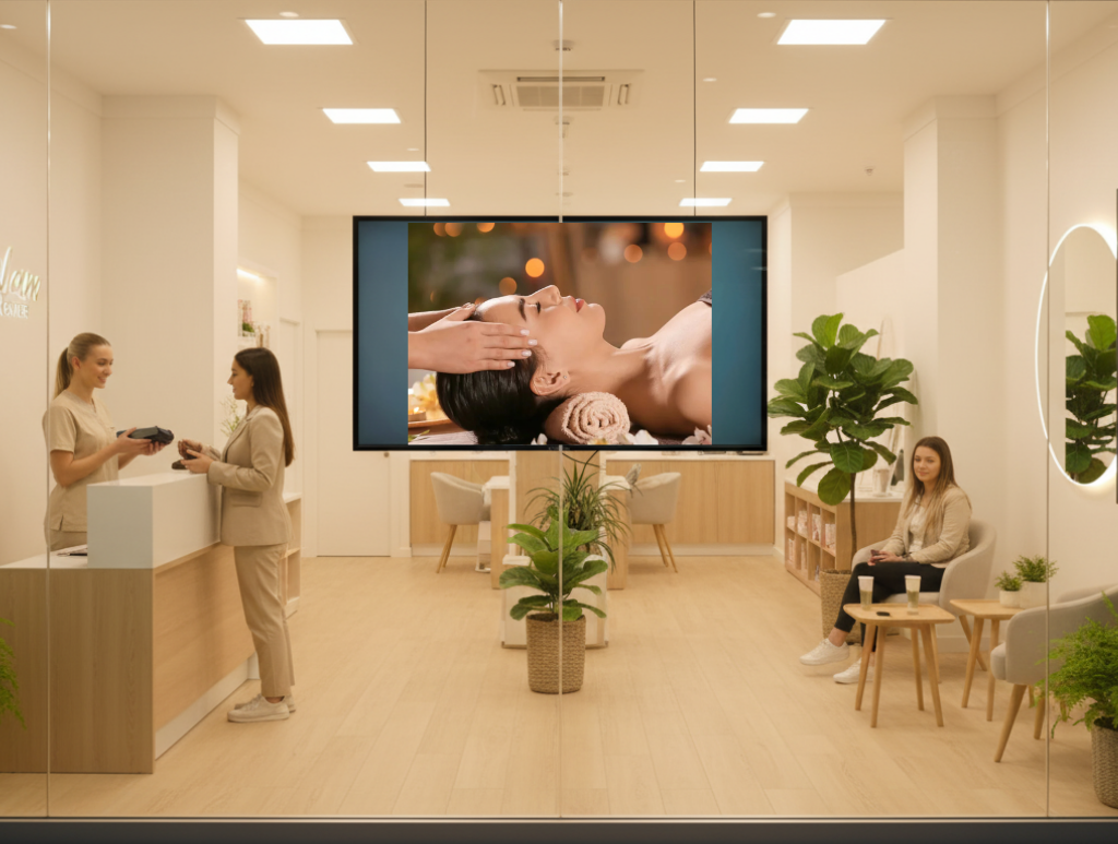 Colocación estratégica: que la pantalla esté bien orientada al público exterior para maximizar su visibilidad.