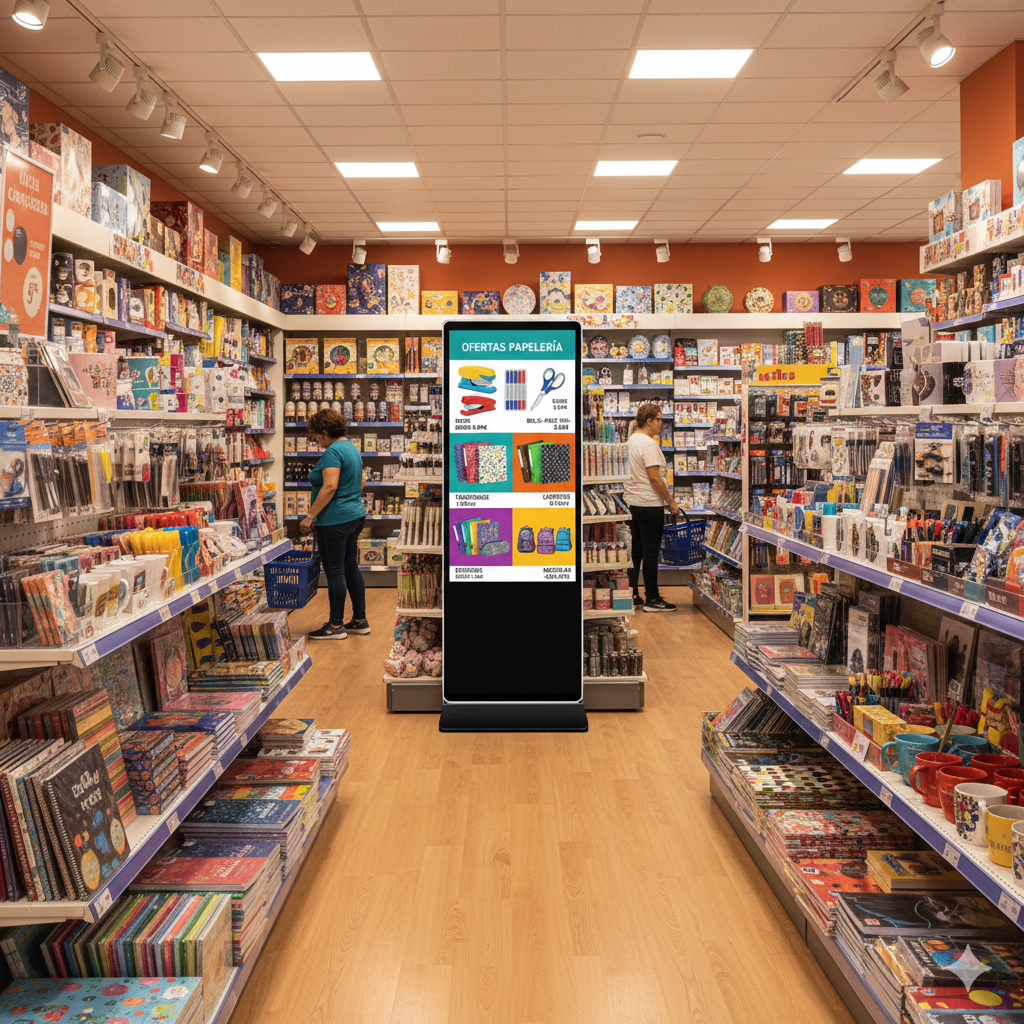 Nuestro tótem interior es una propuesta sofisticada diseñada para transformar cualquier ambiente protegido en un punto visual de alto impacto. Con un formato vertical elegante, sirve para reforzar la identidad de marca, comunicar promociones, mostrar información o interactuar con el cliente.